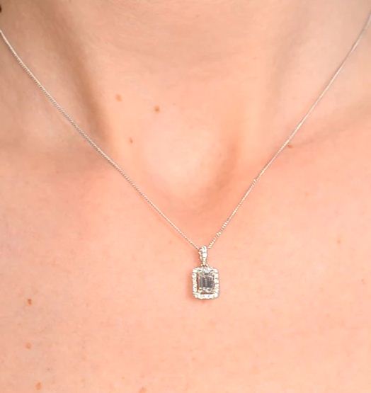 1 CT Emerald Cut Diamond Charm Pendant For Women, Halo Pendant, Wedding Pendant, Engagement Pendant, Christmas Gifts