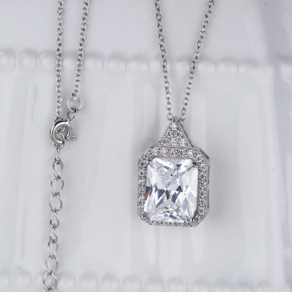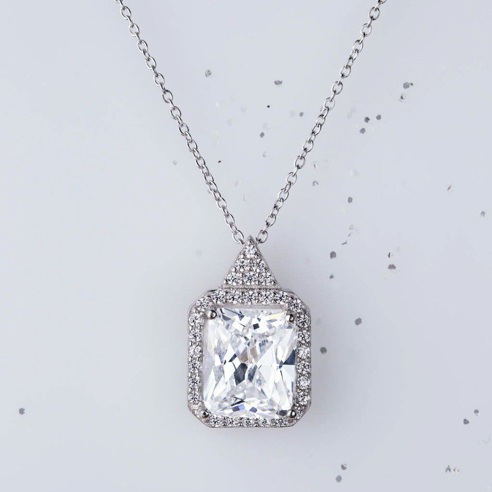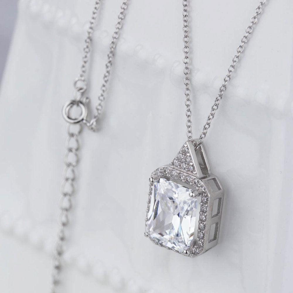 2 CT Radiant Cut Diamond Charm Pendant For Women, Halo Pendant, Anniversary Gifts, Christmas Gifts
